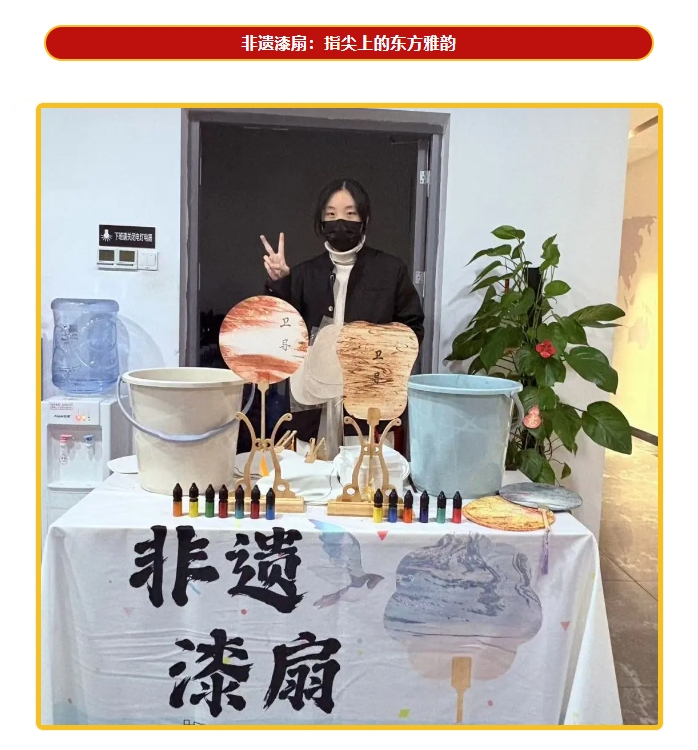 非遺漆扇制作區(qū)域吸引了眾多員工駐足參與,大家以漆為筆、以扇為紙,親手染制出一把把精美絕倫的漆扇,感受傳統(tǒng)文化在指尖流淌。