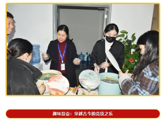 趣味投壺活動(dòng)更是將現(xiàn)場(chǎng)氣氛推向高潮,員工們排起長(zhǎng)隊(duì),躍躍欲試。在指定區(qū)域內(nèi),大家手持箭矢,瞄準(zhǔn)壺口,全神貫注地投入比賽。歡呼聲與笑聲交織在一起,每一次命中都伴隨著熱烈的掌聲。