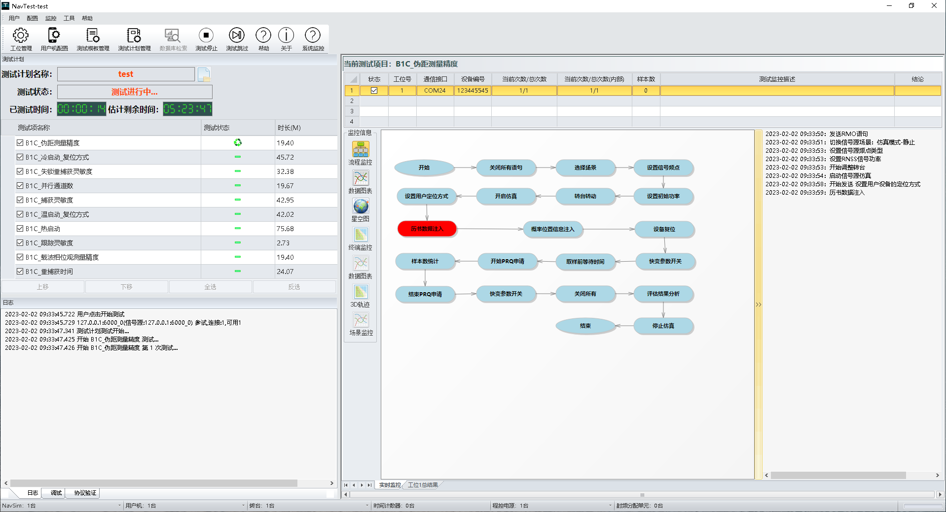實時控制能力:對GNSS導航信號模擬器、通用測試設備等測試設備以及被測設備(如GNSS衛(wèi)星導航接收機)進行參數(shù)設置并實時控制。